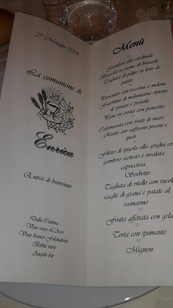 Villa Diamante Menu